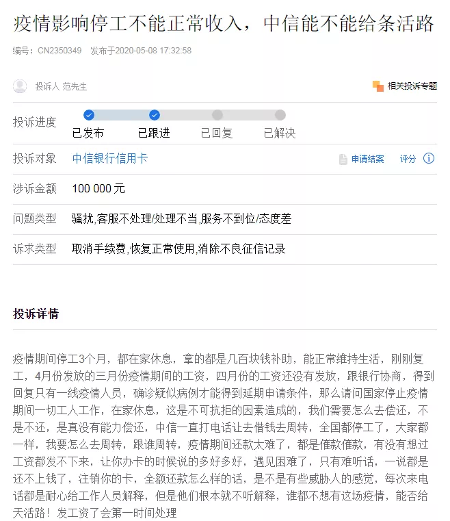 第二,因为什么样的原因导致逾期,我们要找一些不可抗力的因素,比如说因为疫情的原因,导致自己和家人失业或者经营失败,又或者是因家人身患疾病等原因导致经济紧张,暂时无力还款。